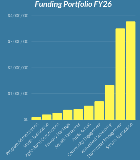 And “projects” is conceived pretty broadly. Some are on-the-ground restoration, like a half-million-dollar wetland creation, but others are a little more unconventional, such as paying Baltimore anglers $30 per invasive fish they catch and dispose of. And up to 10% is for the people power that ensures community buy-in and long-lasting engagement.