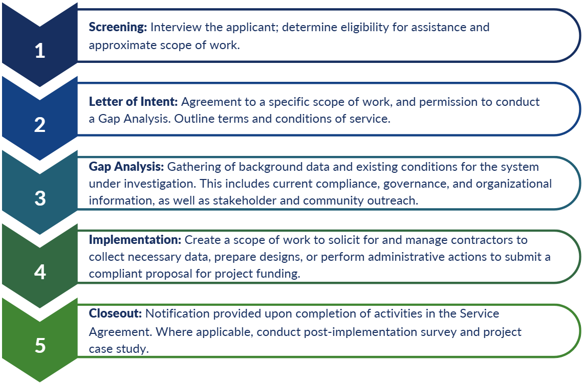 Through localized capacity support and financing expertise, we help utilities, municipalities, Tribes, and local agencies identify and develop capital projects, meet regulatory requirements, and secure public funding to improve drinking water, wastewater, and stormwater infrastructure.