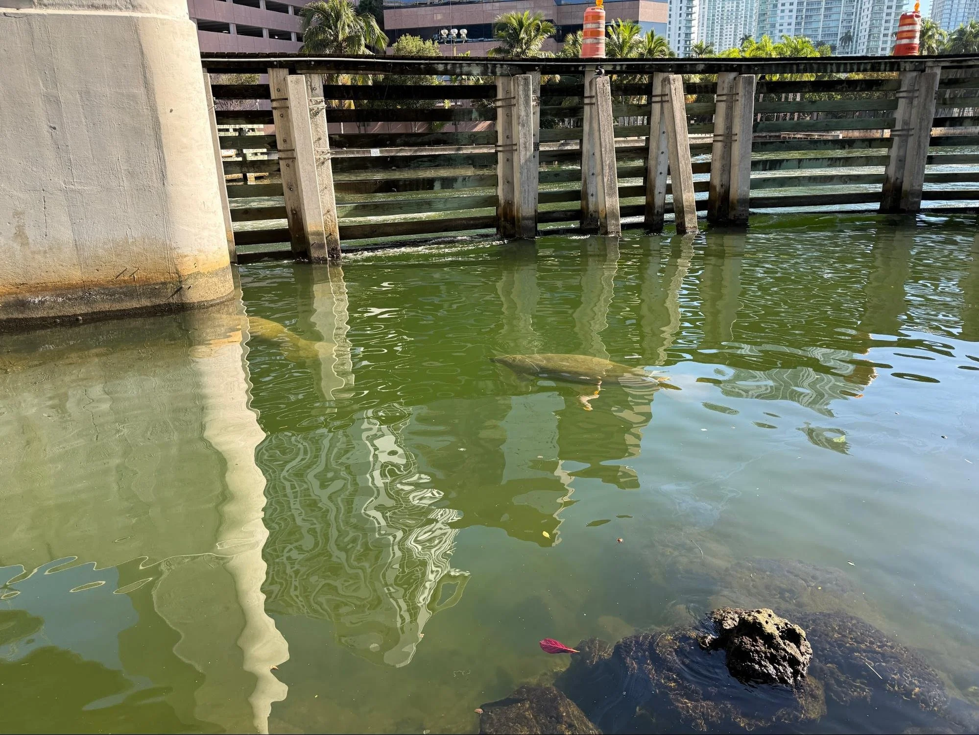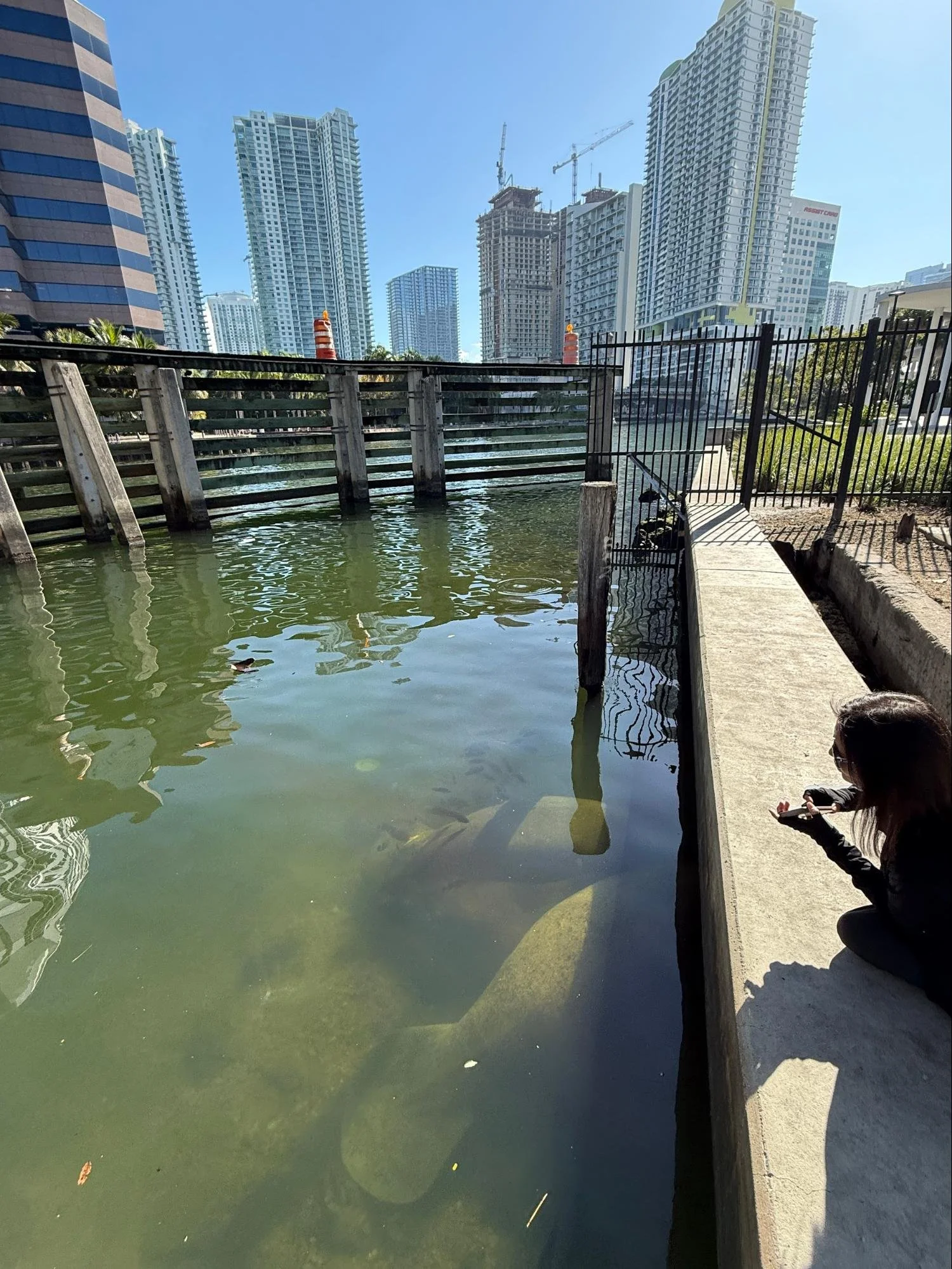 We were delighted that our park visit ended with an unexpected ecological moment: two rare manatees appeared along the shoreline! The animals were drawn to a freshwater spring emerging beneath a sidewalk retaining wall, while a nearby wooden maritime traffic deflector provided shelter from passing boats. A visible propeller scar on one of the manatees was a stark reminder of how frequently these gentle giants are impacted by boats, highlighting the need for integrating wildlife protection and passage into more effective transportation design.