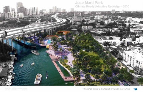 The City of Miami is dedicated to redesigning the heavily used public space for long-term resilience while preserving its role as a community asset. Their holistic approach incorporates considerations of tidal flux, flooding, maritime transportation, public access, recreation, and community wellness into the redesign.